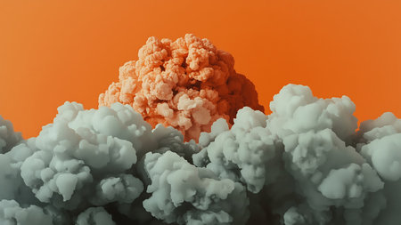 3d illustration of big cloud explosion over orange background with copy space