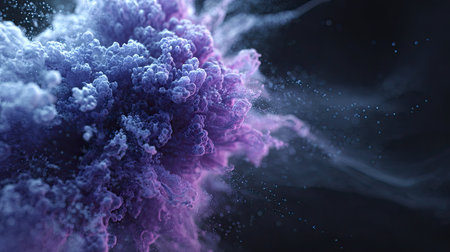 Abstract purple blue smoke explosion expanding particles