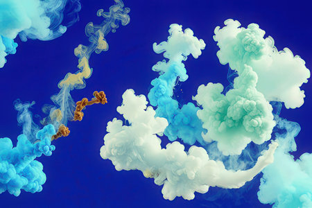 Colorful smoke clouds on a blue background. 3D illustration.