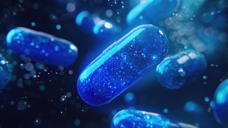 floating blue capsules with sparkling effect. High quality photo