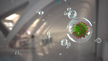 Aerosols with the corona viruses indoors. 3d illustration.