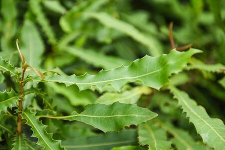 native Australian banksia plant outdoor in sunny backyard shot at shallow depth of field