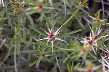 natural thorn plant and flower,thorn plant and pointed needles,close-up thorn plant,
