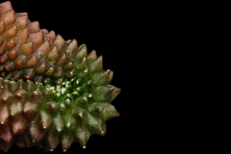 Close up side view of pseudolithos mccoyi plant, flower bud, stem leaf part. Isolated on black background. image photo