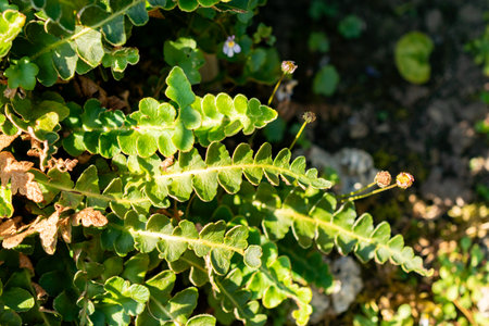 Saint Gallen, Switzerland, August 18, 2025 Ceterach Officinarum or rustyback fern plant at the botanical garden