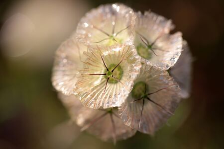 top view macro photography of wild plants with fog drops in the forest. wild and forest concept