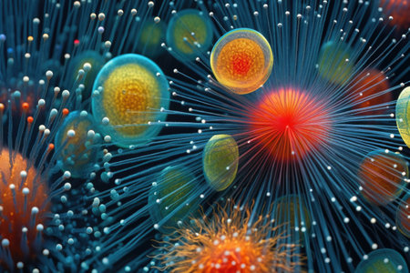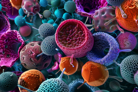 Colorful microorganism cells close up. illustration in high details for medical education and science. ai generative.