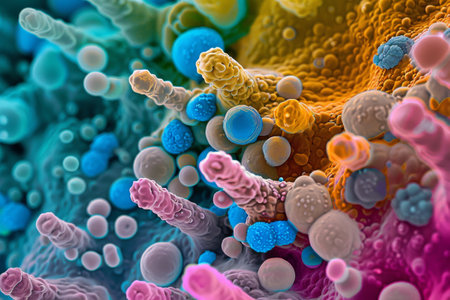 close-up of microscopic bacteria colonies interacting, created with generative ai