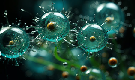 Explore the unseen with this captivating stock illustration capturing bacteria and virus cells in a petri dish. Generative AI brings the microscopic to life.