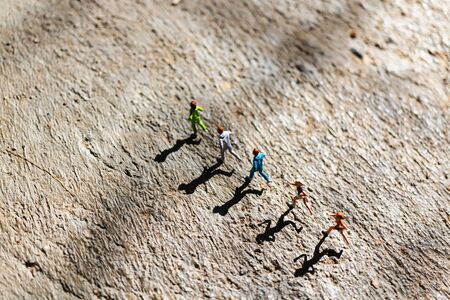 Miniature people : Group of people are running on concrete floor, Healthy and lifestyle concept