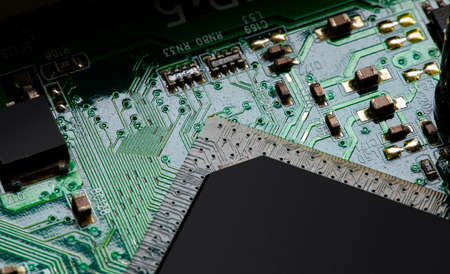 Electronic circuit board close-up. Electronic computer hardware technology.