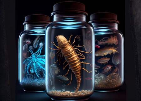sea nasty animals in a glass jar. ai generated.