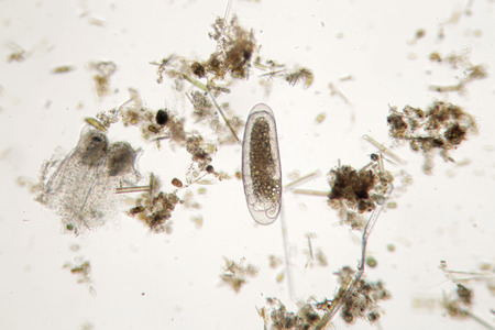 Protozoa and Green Algae in waste water under the microscope.
