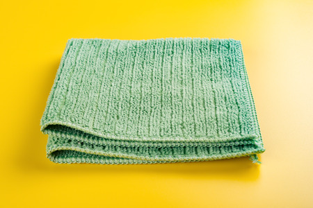 folded green towel on yellow background