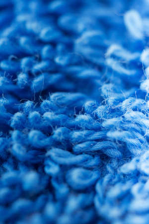Blue towel fabric texture surface close up background