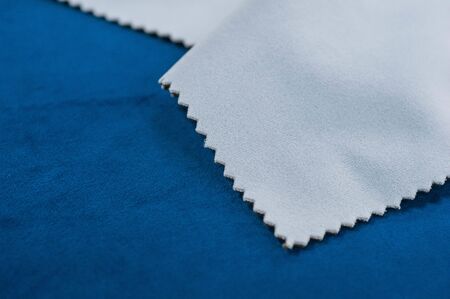 Blue microfiber cloth as a background, closeup of photo