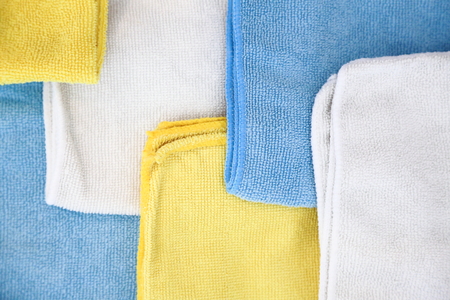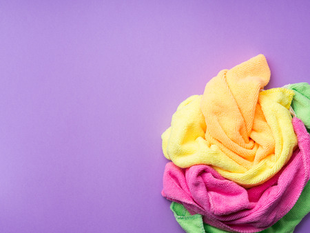 Background with microfiber set of colorful cleaning cloths