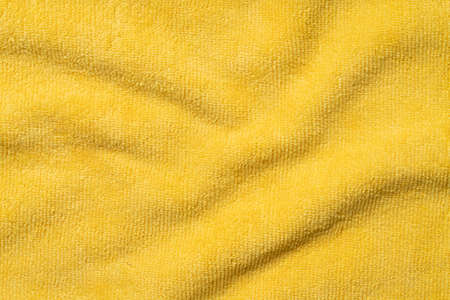 Clean yellow microfiber cloth as background, top view