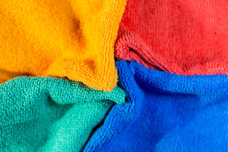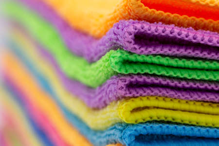 Colorful Clean: Closeup of dry microfiber cloths for cleaning various surfaces. Vibrant colors add a touch of cleanliness to your household