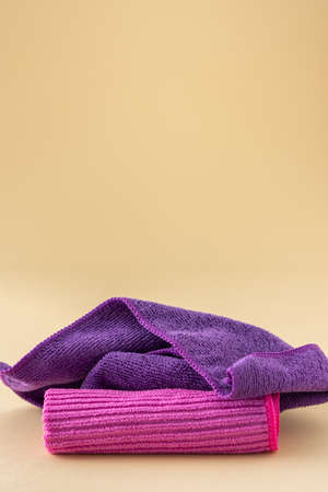 Multicolored microfiber cloths for washing on a neutral beige background, cleaning concept