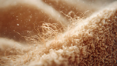 Extreme close-up of dust mites on textile fibers. Microscopic organisms in household dust, allergen source.