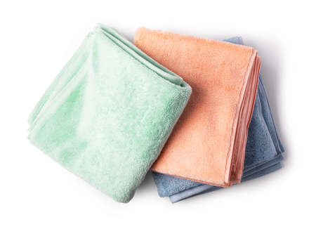 Stack of color microfiber cloths isolated on white background