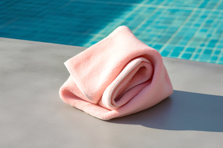 towel on the edge of a swimming pool. soft focus