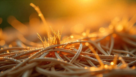 Velcro hook and loop in golden hour light. Extreme macro of plastic hook texture and fastener detail.
