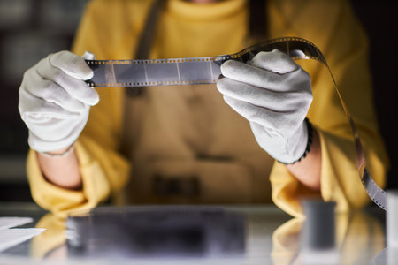 Person with Gloves Handling Film Strip in Photography Studio