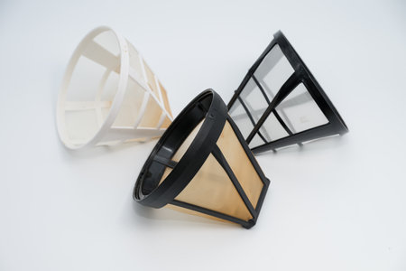 On a table, there are three different types of filters that are placed next to one another, showing their various designs and functionality