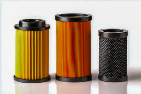 Brass and plastic oil filters for vehicles are arranged on a white background, highlighting their sleek design and high-quality materials that ensure reliability.