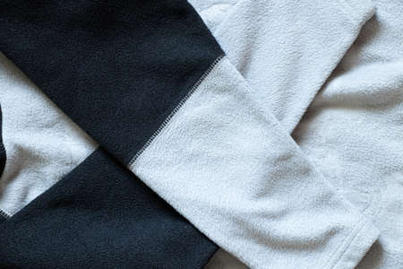 fleece black and white sports jacket, artificial fabric as background, fleece sweaters background, soft warm winter jacket