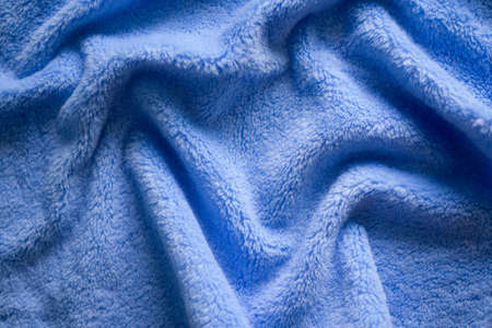 Luxuriors blue towel fabric or silk abstract background. of texture and pattern of colorful blue mess towel fur fabric, top view or flat lay with space for your text.