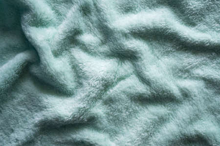 Luxuriors green towel fabric or silk abstract background. of texture and pattern of colorful green mess towel fur fabric, top view or flat lay with space for your text.