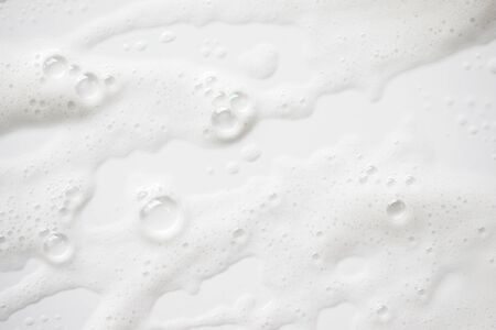 Texture of white foam. Cleansing mousse for the face or bath foam or washing powder. Copy space