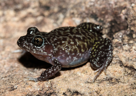 Gastrophryne carolinensis, the eastern narrow mouthed toad, is a species of frog. It is a small amphibian found in damp, shady habitats. Isolated on white background with copy space