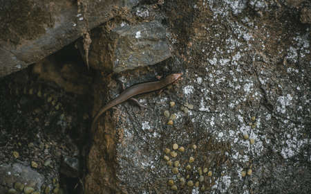 Lizard crawling across the rocky surface