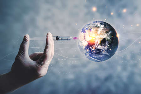 Scientists have vaccinated against Planet Earth for repairing and Cardiopulmonary Resuscitation. Medical Concept of Coronavirus Prevention, Elements of this image furnished by NASA.