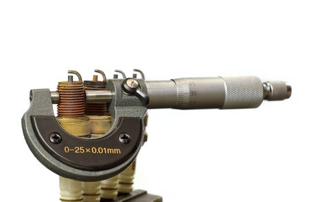 A micrometer and spark plugs