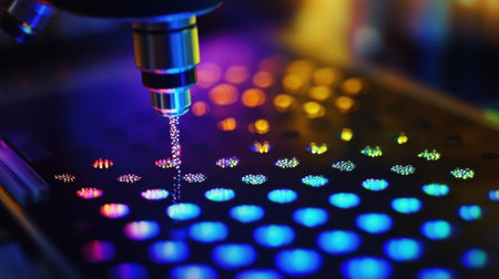 Microscope lenses intensely focused on vivid cellular samples, highlighting the intricate details of biomedical research.