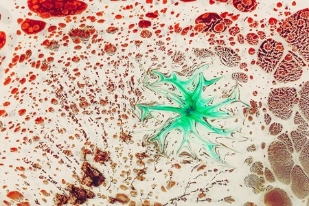 Water colors painting - abstract drawing style ebru, or art of batik.Colored composition is not soluble in the liquid. Floats on the surface.