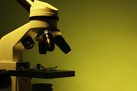 Scientific microscope close up photo. Professional laboratory equipment