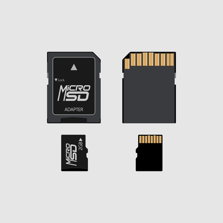 Vector of flat icon micro memory card and adapter connector on background