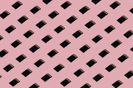 SD card copy on trendy backdrop. Minimal concept on pink background.
