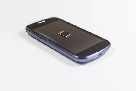 Memory card on a smartphone tray isolated on white background