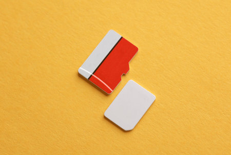 SIM and micro SD memory cards on yellow background