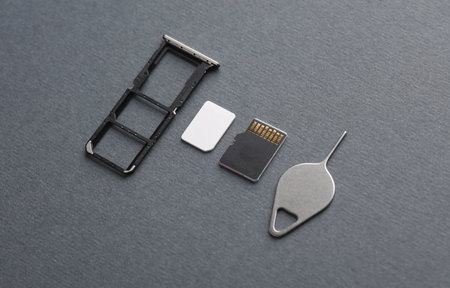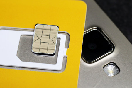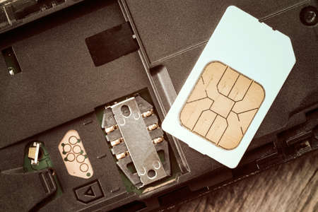 Mobile microchip simcards close up view isolated on studio background. Telecommunication theme