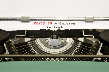 Covid-19 new Omicron variant. Conceptual words Covid 19 Omicron Variant typed on vintage typewriter. Omicron (B.1.1.529): SARS-CoV-2 Variant of Concern