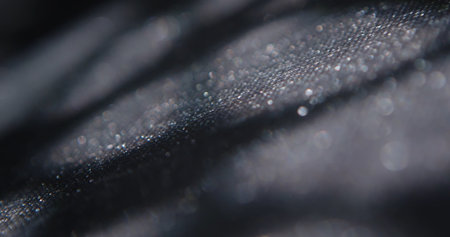 Dark abstract glitter background with blurred silver bokeh. Long horizontal background with short depth of field for religious rituals and spiritual meditation or grief.