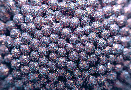 Close up abstract textured surface covered tiny iridescent crystals reflecting vibrant rainbow colors